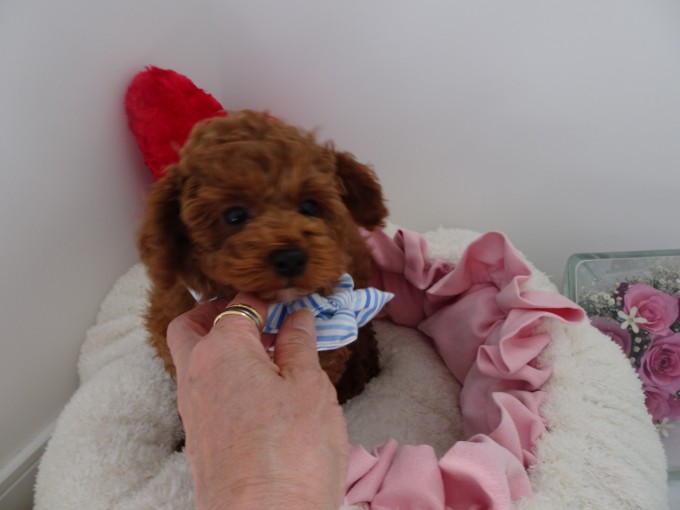 ティーでは小さすぎると思われる方にはちょうどいい大きさと思います。 顎と胸に少しホワイトの毛があります。 毛量もたっぷりなので、カット映えする仔なので、 ホワイトの毛は目立たないと思います。 遊び大好きお茶目で可愛いですよ~♪♪♪ とっても人懐っこい甘えたさん♪♪♪ お写真より数倍可愛いので是非会いに来てあげて下さい。 サークル内でのトイレは、ほぼ成功しております。 お取引後のアフターケアーは、24時間体制でサポートさせて頂きます。 お気軽にお問い合わせ下さい。 |